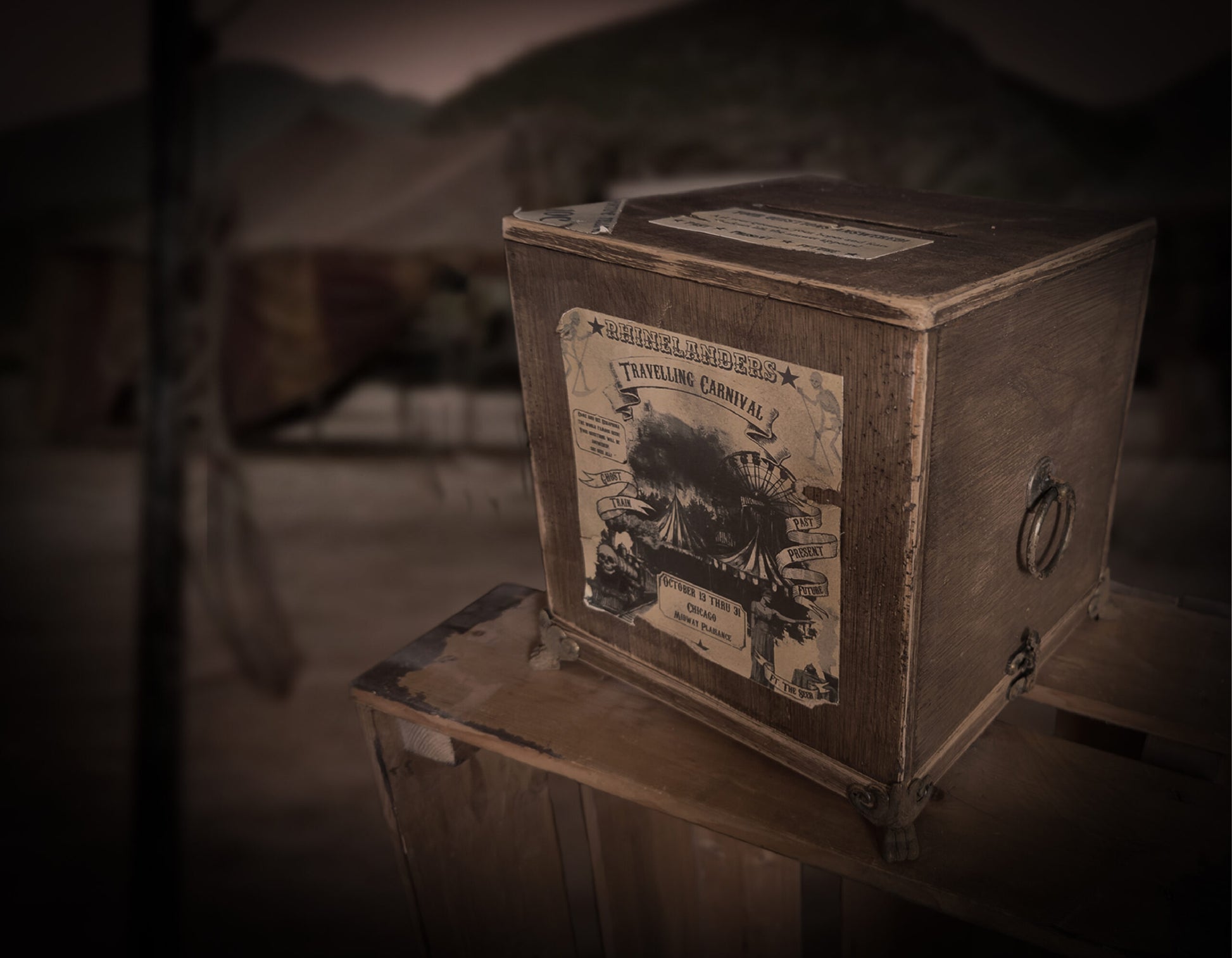 The box is aged with the utmost attention to detail ensuring it passes for an artefact from the era.