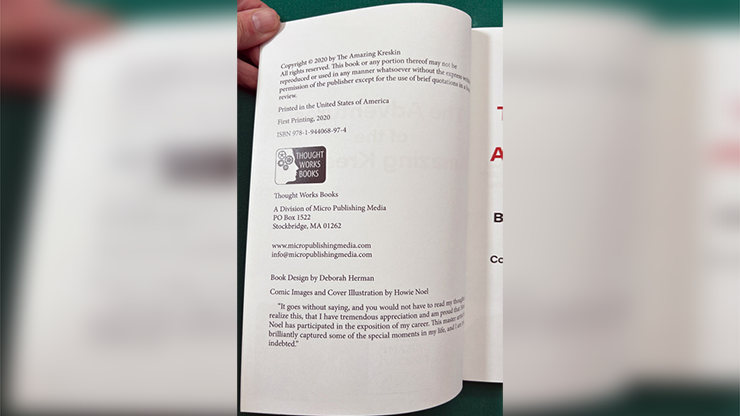 First Edition. Written by The Amazing Kreskin. Published by Thought Work Books in 2020. 88-pages, 6" x 9", perfect-bound, with color cover and inside pages, many color photographs, and comic artwork by Howie Noel.