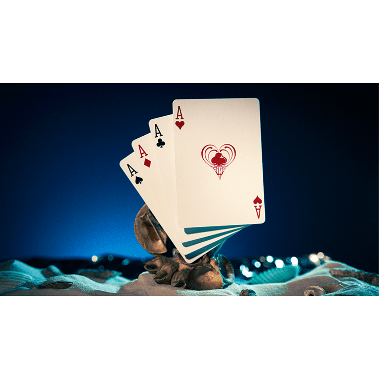 The custom court cards bring a fanciful twist to familiar faces, turning all of the Jacks, Queens, and Kings into mer-people. Each of the number cards includes customized jellyfish suit pips. Even with the customization the cards are still highly playable.