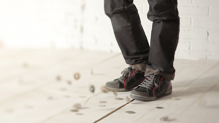 At any moment, you borrow a coin and have it signed on both sides. Now, holding it at your fingertips with your sleeves rolled up, the coin vanishes into thin air without a trace. Your hands are genuinely empty, and there's nothing to hide. But here's the best part: without even moving from your spot, without bending down, and using only your feet, you remove one of your shoes to reveal the signed coin inside! A valuable coin technique that will allow you to create genuine impromptu miracles.