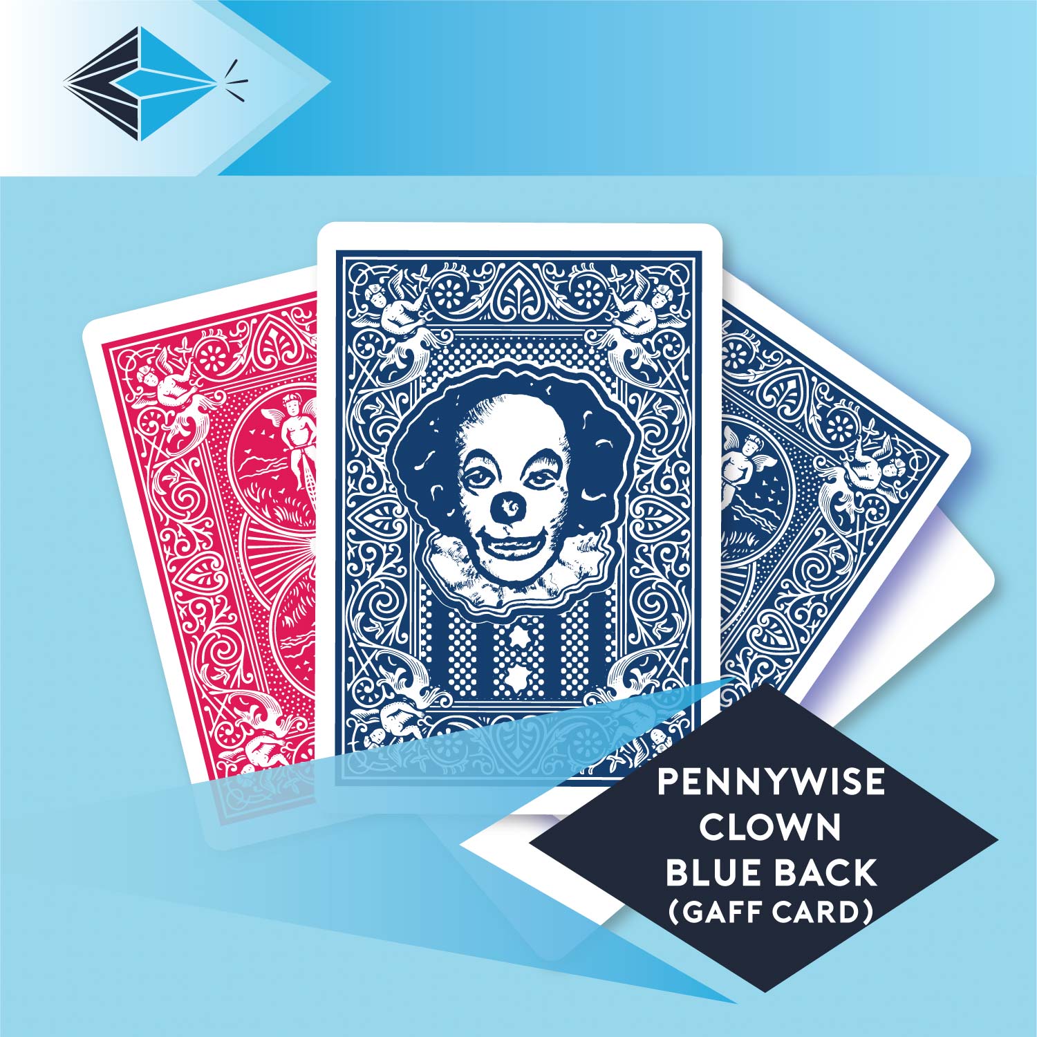 "Time To Float"! Our Pennywise Clown Blue Back Gaff Card is printed onto premium quality bicycle playing cards, ready made for magic! The most famous deck of playing cards used by Magicians all over the world!